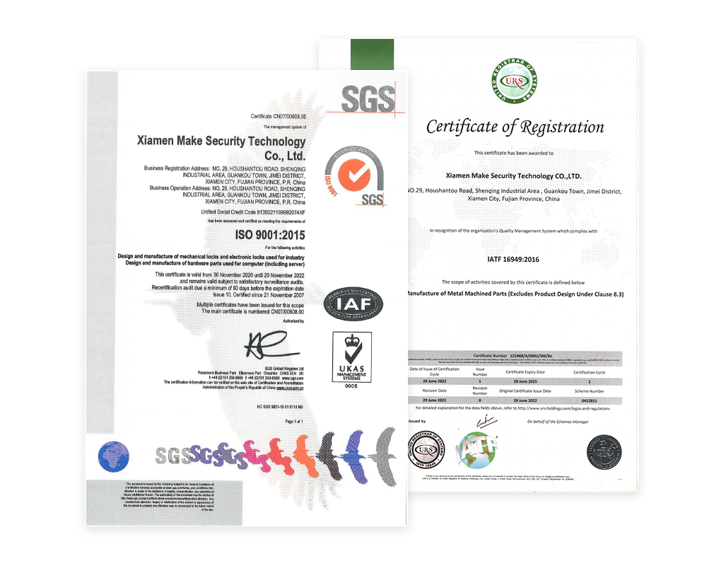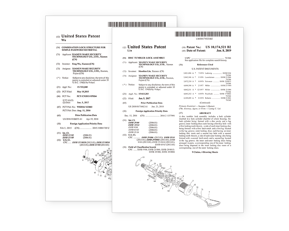 Being committed to innovation, MAKE has obtained 389 international and domestic patents by now. The most we’d like to highlight is three of our internationally patented products M1, M2, and M3 Lock. There were designed in a special lock system with over 16 million key combinations, especially suitable for financial service machine that requires higher security.